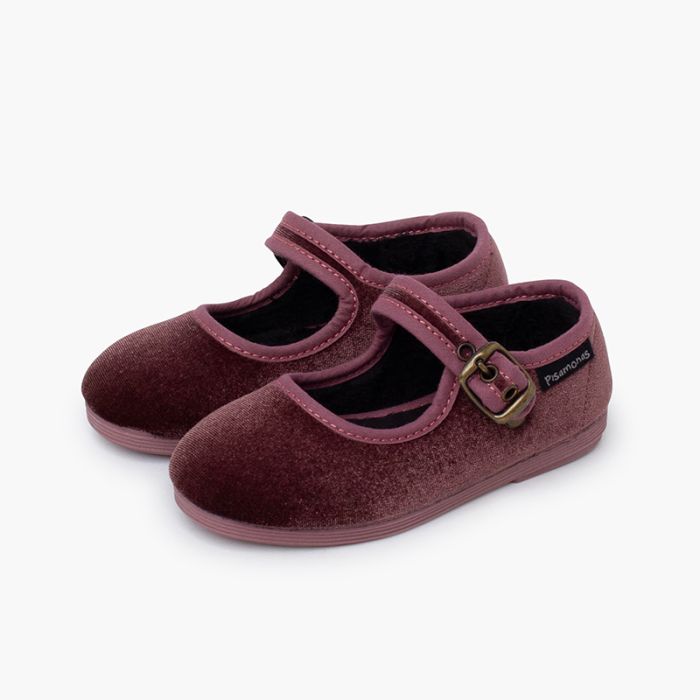 Nouveau modèle de chaussures babies pour petites filles qui allie la tendance actuelle d'une forme large et d'une pointe arrondie, avec le design classique de nos babies en velours et boucle intemporelle.