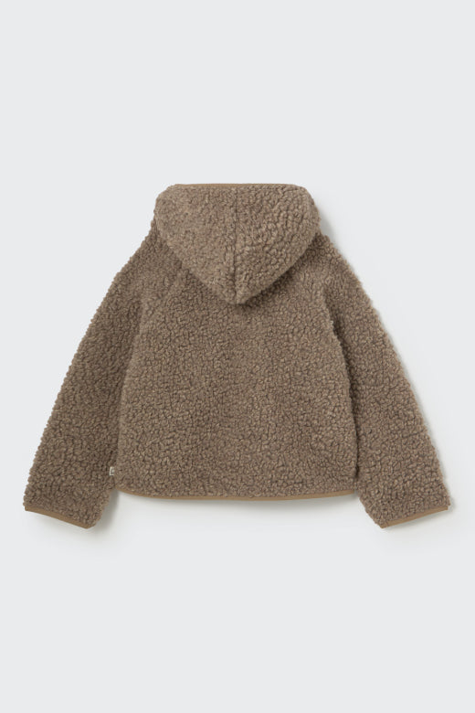 Cette veste pour enfant est confectionnée en laine vierge sherpa ultra-chaude, à la texture moelleuse et douillette, avec un effet chiné élégant. Elle est dotée d'une capuche, d'une fermeture zippée, de manches raglan et de poches fendues pour plus de praticité. Son passepoil contrasté ajoute une touche de finition et de confort.